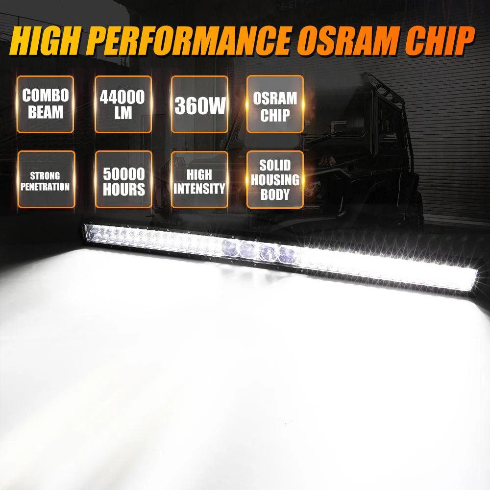 - Made of premium die-aluminum alloy material, the solid housing body effectively prevents the light bar from breaking when driving at high speeds.