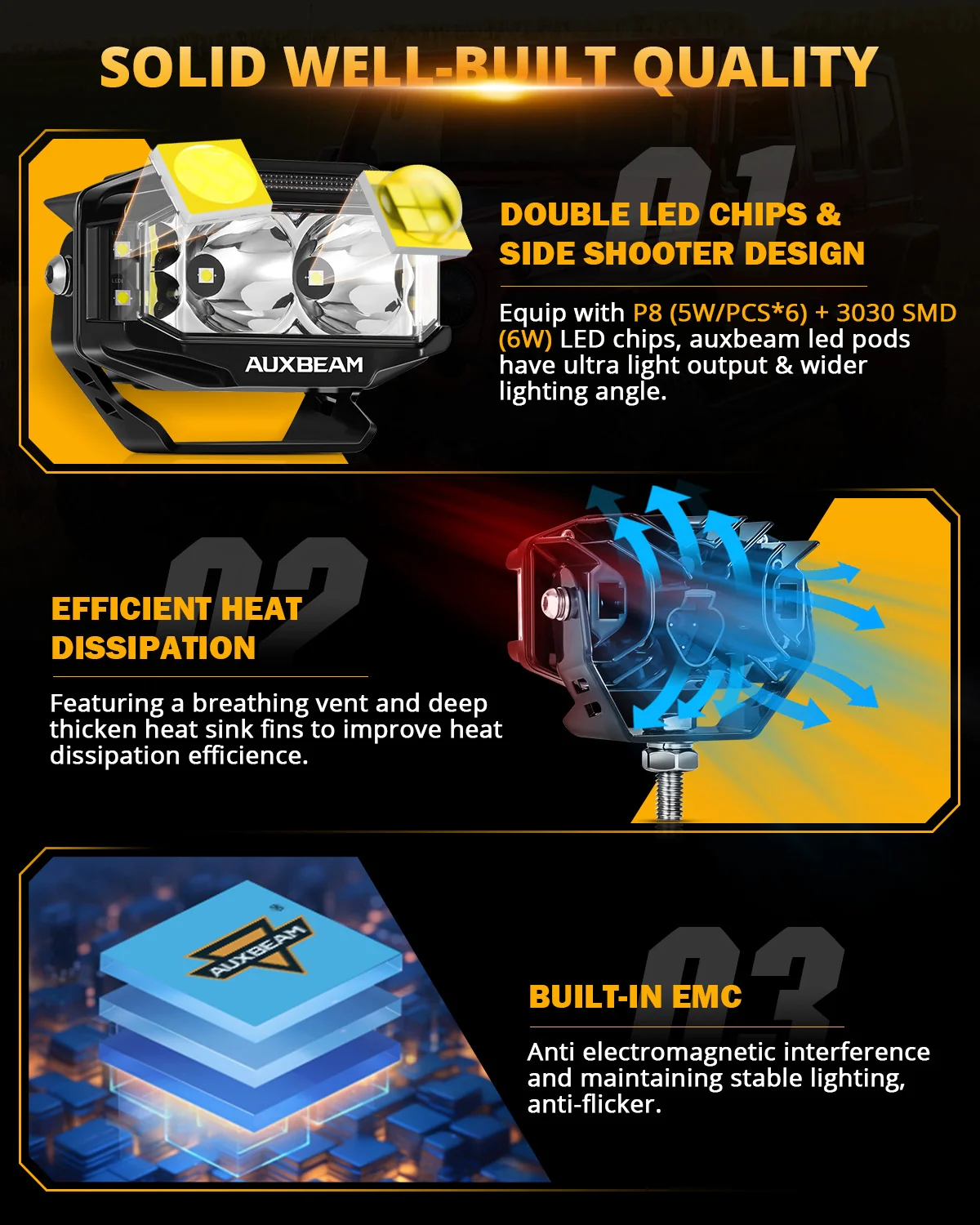 Trusted Brightness: Employ top-notch led chips, total 36 watts per light, with lighting performance 3480LM/PCS. Features a trusted brighter long-lasting light, and a clearer, wider, and further visual area. Lifespan extends over 50,000H.