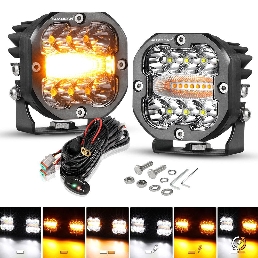 Auxbeam XP-ULTRA Series 3 INCH 96W 9600LM LED PODS 6 MODES WHITE AMBER FLASHING LED DRIVING LIGHTS